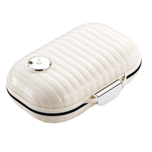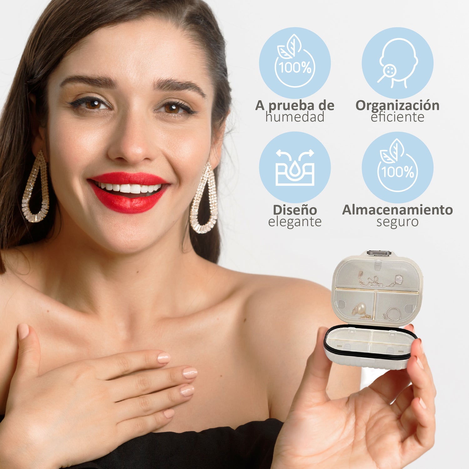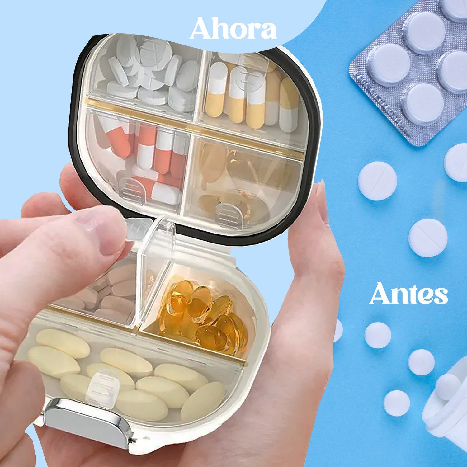Llevar este pastillero contigo te asegura tener siempre tus medicamentos y joyas organizados y protegidos, sin importar dónde estés. Es la clave para mantener tu rutina diaria y tranquilidad, especialmente durante viajes o días ajetreados.